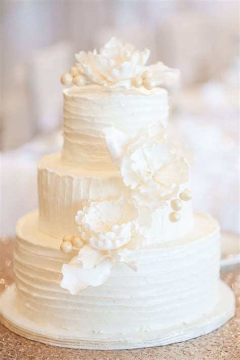 The white cake created a visual link to the brides white dress. A plain white wedding cake decorated with a large white sugar flower, the petals are cascading for a whimsy touch. Why are wedding cakes traditionally white? Today, brides are often coordinating the color of their.