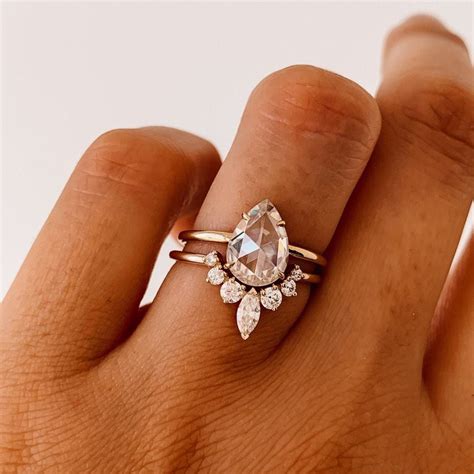 Pear Wedding Rings . If you’re following the stacked wedding band trend, the oval engagement ring is perfect to pair with two or more wedding bands as it results in a very symmetrical look. Pear shaped moss agate engagement ring set vintage moss agate ring set marquise moissanite ring set green moss ring 7 stone ring bridal set.
