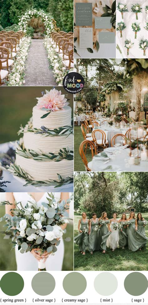 Sage Wedding Theme. Sage wedding colors are easily spruced up with any color from navy blue, blush to gold glitter, besides metallic decor is one of top trends right now. Look through our gallery and get inspired by the best wedding cakes, bouquets, photography and decor with trendy color touch!