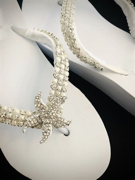 Sparkly rhinestone starfish bridal flip flops. Ad by rocktheflops ad from shop rocktheflops rocktheflops from shop rocktheflops. Our personalized flip flops make wonderful gifts for the bride and her bridesmaids. Many of these popular flip flops leave imprints in the sand, a must for a beach honeymoon! 4.1 out of 5 stars.