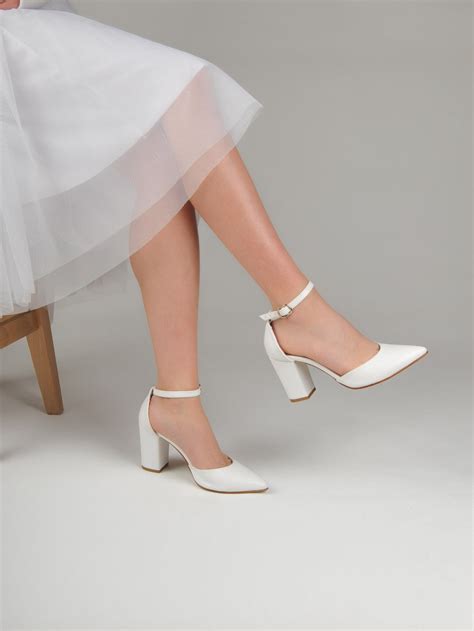 White rock glitter block heel with back satin bow, women wedding shoes, bridal shoes, bridal heels, bride heels, glitter shoes, girls heels. Minimal, super cool and contemporary, we love the round wooden heel on these white leather pumps from & other stories. Lulus even offers comfy slippers to relax in while you get ready with your girls!